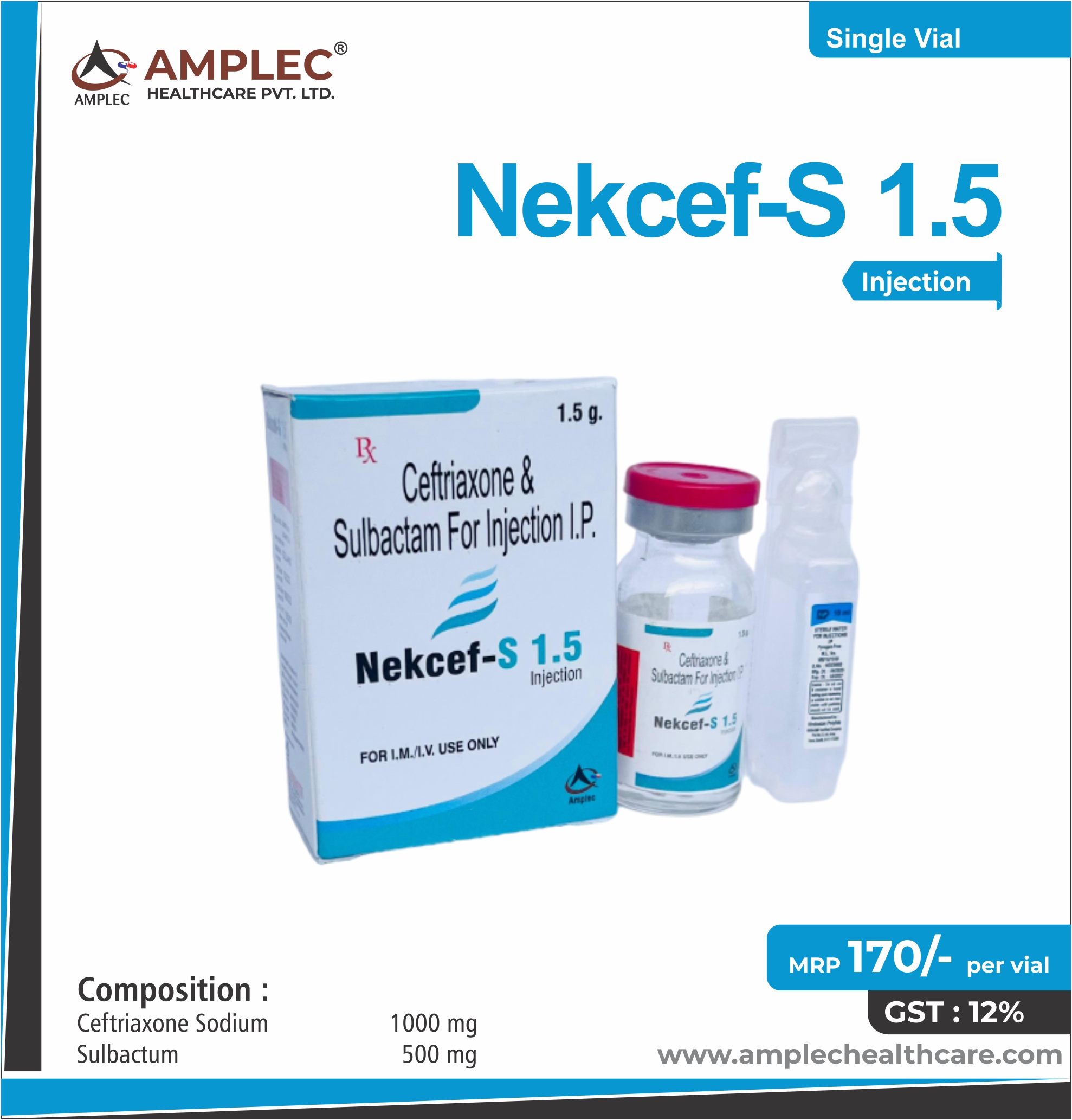 Ceftriaxone Sodium 1000 mg + Sulbactum 500 mg Injection